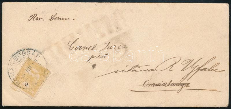 Beschreibung: 1909 Turul 2f levélen, benne esküvői meghívó, Oravicára küldve, majd továbbítva Réva-Újfalura, hátoldalon "Úton van" címkével / 2f on cover "ROMÁN BOGSÁN" to Oravicza, redirected to Réva-Újfalu