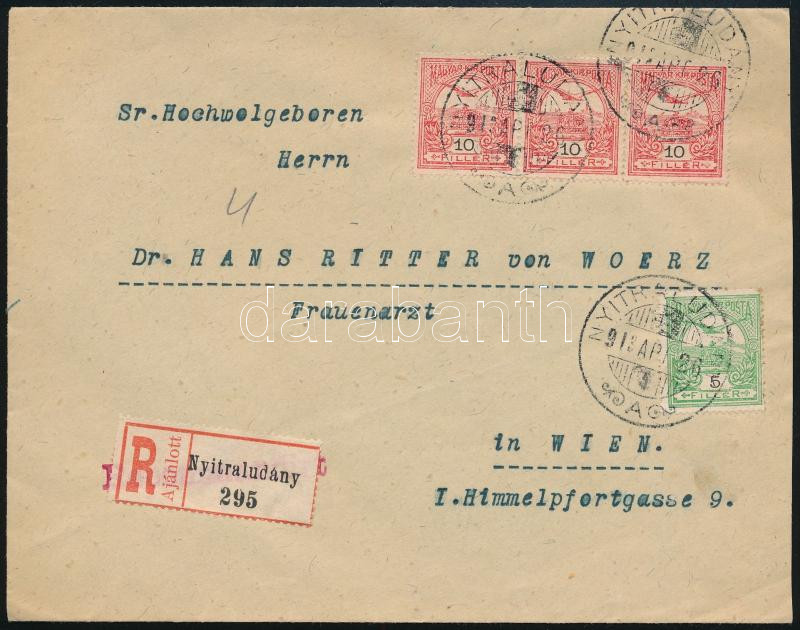 1913 Ajánlott levél 4 db Turul bélyeggel Bécsbe "NYITRALUDÁNY&quo... https://www.darabanth.com/de/45-Gross-Auktion/45.1/Philatelie-und-Postgesichte-Ungarn-Online/Ausgaben-1900-1919~18744/1913-Ajanlott-level-4-db-Turul-belyeggel-Becsbe-NYITRALUDANY-Registered-cover-to-Vienna~II3439606