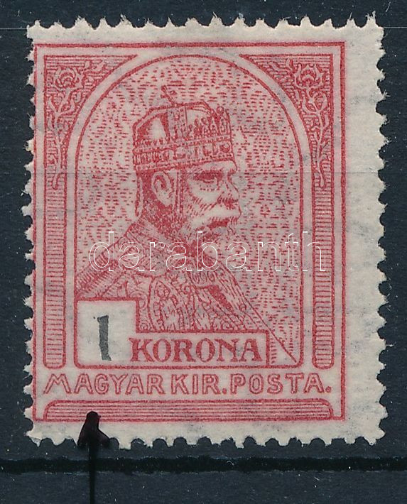 1913 Turul 1K, az 1-esnek nincs lába lemezhibával / with plate variety https://www.darabanth.com/de/45-Gross-Auktion/45.1/Philatelie-und-Postgesichte-Ungarn-Online/Ausgaben-1900-1919~18744/1913-Turul-1K-az-1-esnek-nincs-laba-lemezhibaval-with-plate-variety~II3286749