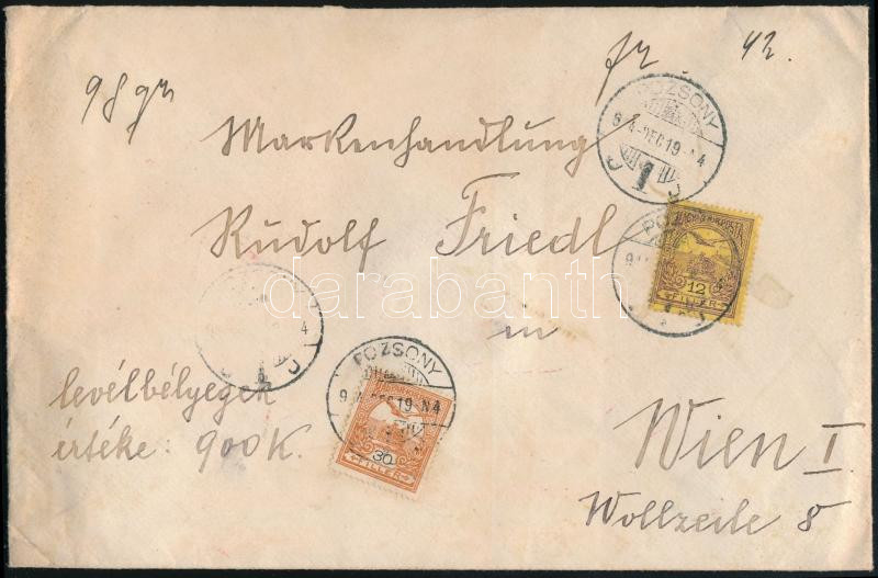 1914 Pénzes levél Pozsonyból Bécsbe 42f bérmentesítéssel / Insured cov... https://www.darabanth.com/de/45-Gross-Auktion/45.1/Philatelie-und-Postgesichte-Ungarn-Online/Ausgaben-1900-1919~18744/1914-Penzes-level-Pozsonybol-Becsbe-42f-bermentesitessel-Insured-cover-to-Vienna-POZSONY~II3439556