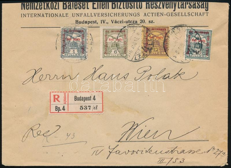 1916 Ajánlott levél 4 db Hadisegély II. bélyeggel Bécsbe / Registered ... https://www.darabanth.com/de/45-Gross-Auktion/45.1/Philatelie-und-Postgesichte-Ungarn-Online/Ausgaben-1900-1919~18744/1916-Ajanlott-level-4-db-Hadisegely-II-belyeggel-Becsbe-Registered-cover-to-Vienna~II3439604