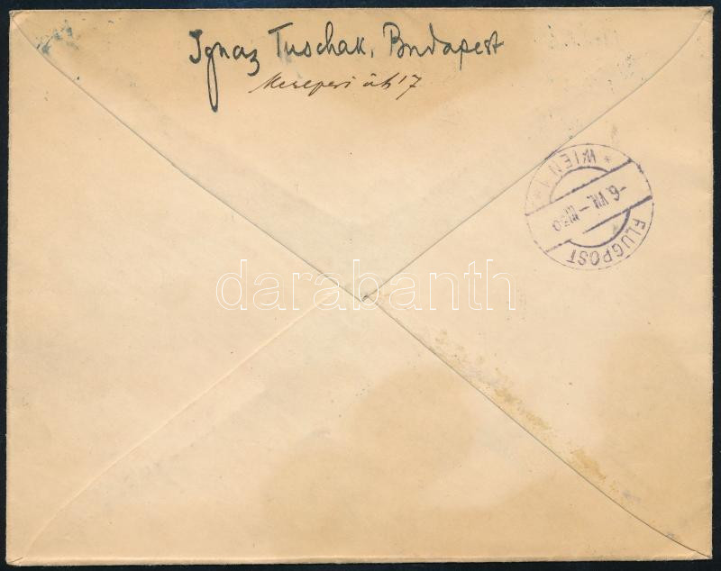 1918 Ajánlott légi levél Repülő posta 1K50f bérmentesítéssel "BUD... https://www.darabanth.com/de/45-Gross-Auktion/45.1/Philatelie-und-Postgesichte-Ungarn-Online/Ausgaben-1900-1919~18744/1918-Ajanlott-legi-level-Repulo-posta-1K50f-bermentesitessel-BUDAPEST-Wien-Registered-~II3413289