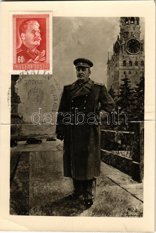 1946 Sztálin vágott 60f CM-en (hajtott) / Mi 1066 imperforate stamp on... https://www.darabanth.com/de/45-Gross-Auktion/45.1/Philatelie-und-Postgesichte-Ungarn-Online/Ausgaben-1946-1956~18884/1946-Sztalin-vagott-60f-CM-en-hajtott-Mi-1066-imperforate-stamp-on-CM-folded~II3256916
