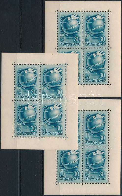 Beschreibung: 1948 3 db Bélyegnap kisív (24.000) / 3 x Mi 1034 mini sheet
