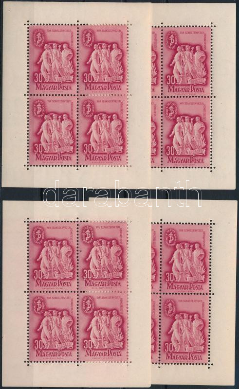 Beschreibung: 1948 4 db Szakszervezet kisív (24.000) (ráncok) / 4 x Mi 1035 mini sheet (creases)