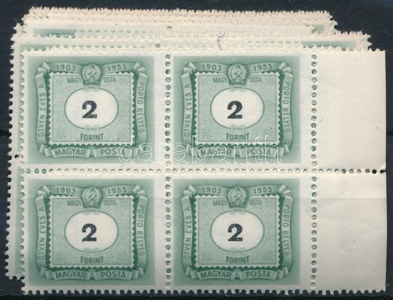 Beschreibung: 1953 50 éves a magyar portó bélyeg sor 4-es tömbökben / Mi 203-220 set in blocks of 4