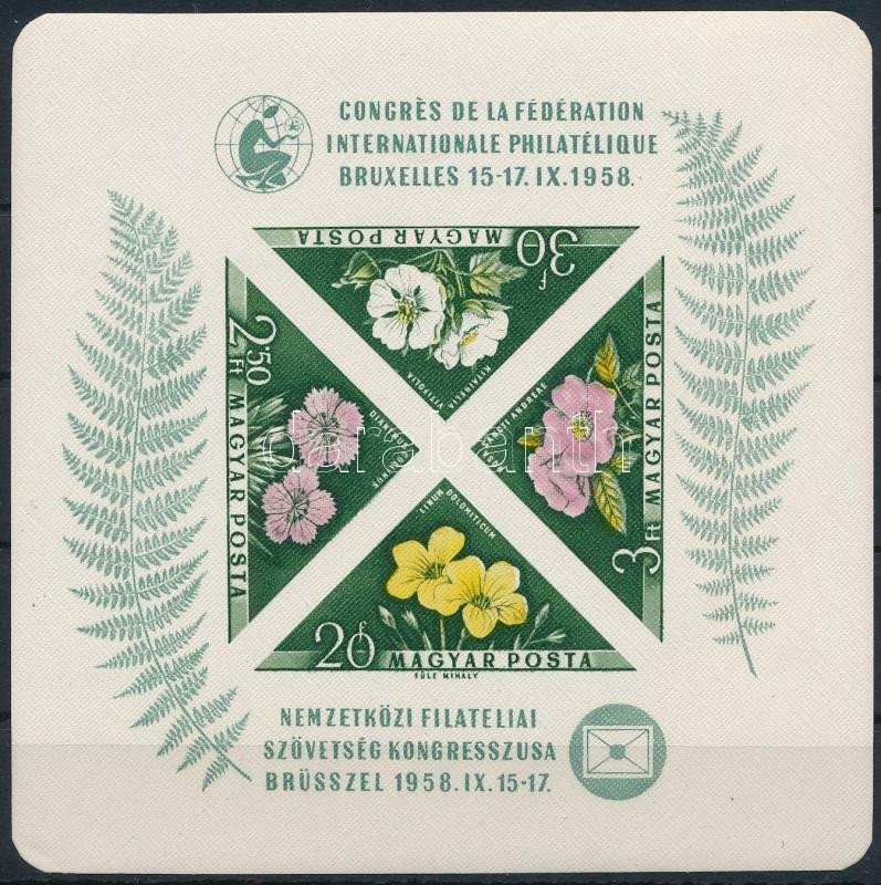 1958 FIP I. Virág vágott blokk / Mi block 28 imperforate https://www.darabanth.com/de/45-Gross-Auktion/45.1/Philatelie-und-Postgesichte-Ungarn-Online/Ausgaben-1957-1969~18886/1958-FIP-I-Virag-vagott-blokk-Mi-block-28-imperforate~II3435775