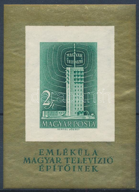 1958 Televízió vágott blokk (30.000) / Mi 26 imperforate block https://www.darabanth.com/de/45-Gross-Auktion/45.1/Philatelie-und-Postgesichte-Ungarn-Online/Ausgaben-1957-1969~18886/1958-Televizio-vagott-blokk-30000-Mi-26-imperforate-block~II3439092