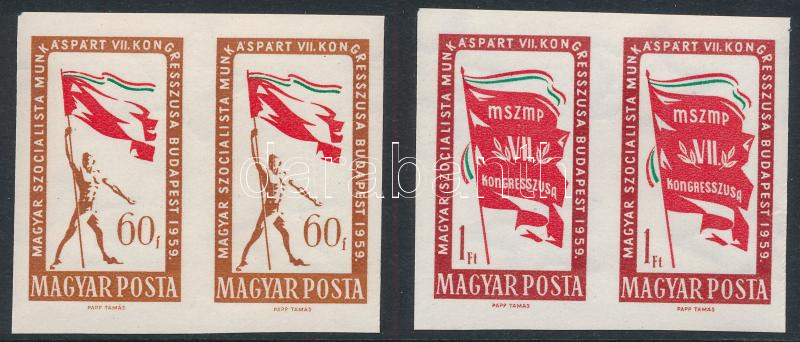 Beschreibung: 1959 MSZMP vágott párok (ráncok, 1Ft kis szakadás) / Mi 1640-1641 imperforate pairs (creases, 1Ft small torn)