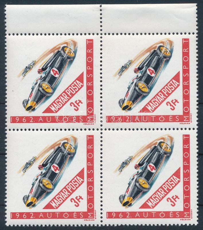 1962 Autó- és motorsport 3Ft ívszéli négyestömbben lemezhibával / Mi 1... https://www.darabanth.com/de/45-Gross-Auktion/45.1/Philatelie-und-Postgesichte-Ungarn-Online/Ausgaben-1957-1969~18886/1962-Auto-es-motorsport-3Ft-ivszeli-negyestombben-lemezhibaval-Mi-1897-block-of-4-with-pla~II3437078