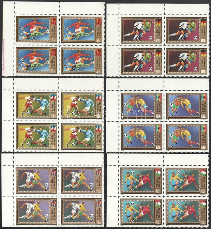 1972 Labdarúgó VB 6 klf ívsarki négyestömb / blocks of 4 https://www.darabanth.com/de/45-Gross-Auktion/45.1/Philatelie-und-Postgesichte-Ungarn-Online/Ausgaben-1970-1979~18887/1972-Labdarugo-VB-6-klf-ivsarki-negyestomb-blocks-of-4~II3437779