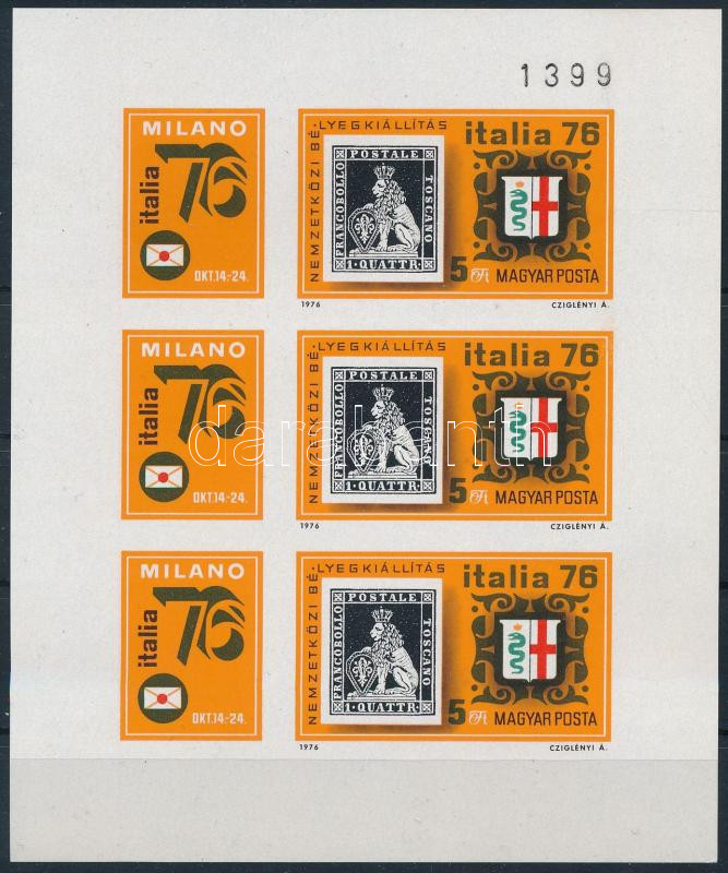 1976 ITALIA vágott kisív / Mi 3143 imperforate mini sheet https://www.darabanth.com/de/45-Gross-Auktion/45.1/Philatelie-und-Postgesichte-Ungarn-Online/Ausgaben-1970-1979~18887/1976-ITALIA-vagott-kisiv-Mi-3143-imperforate-mini-sheet~II3416038