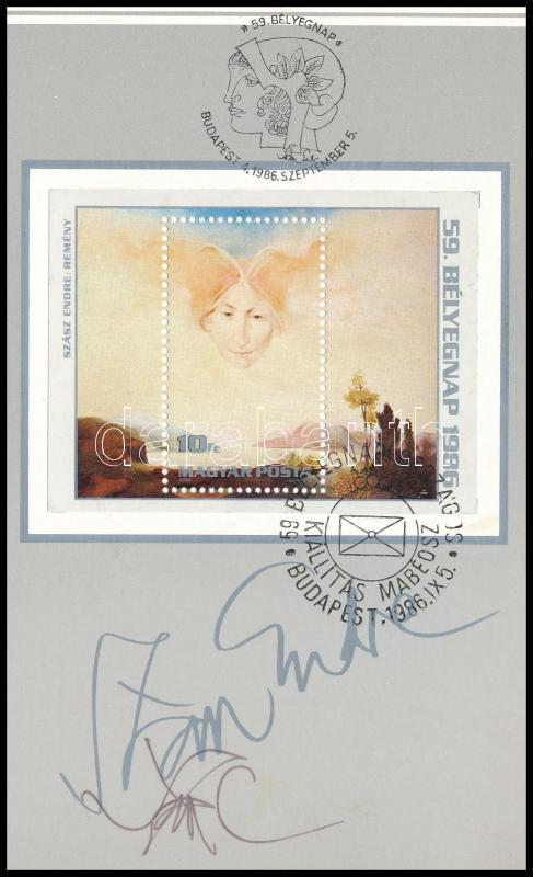 Beschreibung: 1986 Bélyegnap emléklap Szász Endre aláírásával