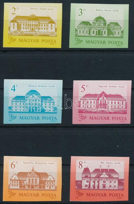 1986 Kastélyok vágott sor / Mi 3854-3859 imperforate set https://www.darabanth.com/de/45-Gross-Auktion/45.1/Philatelie-und-Postgesichte-Ungarn-Online/Ausgaben-1980-1989~18888/1986-Kastelyok-vagott-sor-Mi-3854-3859-imperforate-set~II3416157