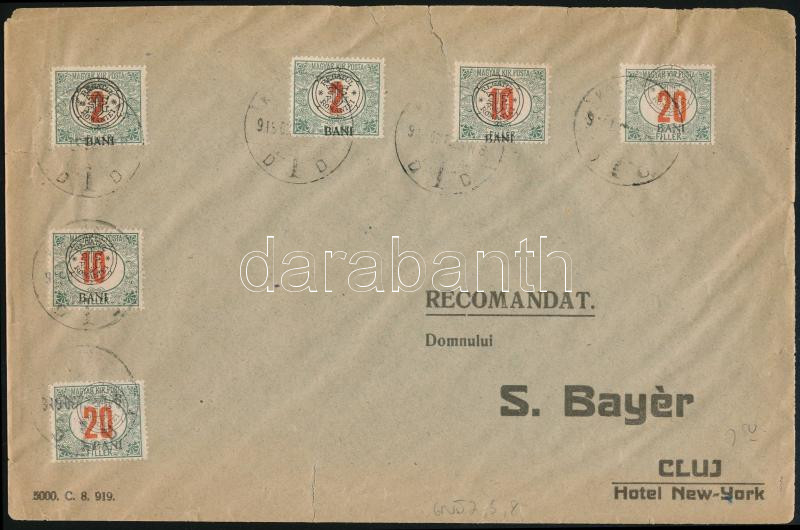 Beschreibung: 1919 Kolozsvár helyi levél 6 db portó bélyeggel / Local cover with 6 postage due stamps