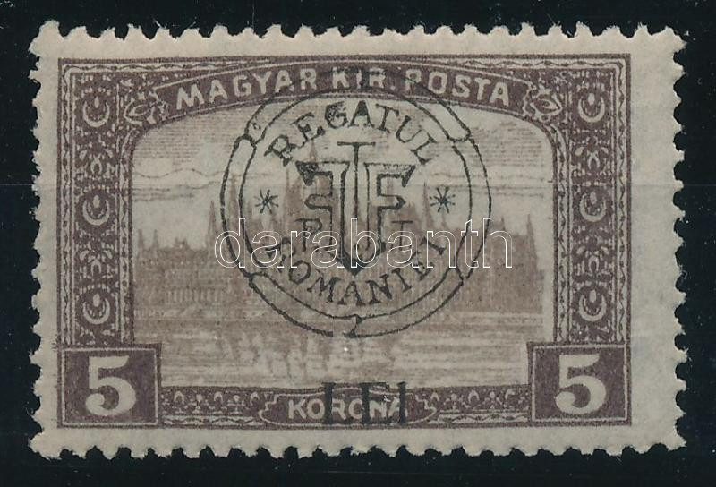 Beschreibung: Kolozsvár 1919 Parlament 5K a felülnyomatban különböző lemezhibákkal / with misc. plate varieties