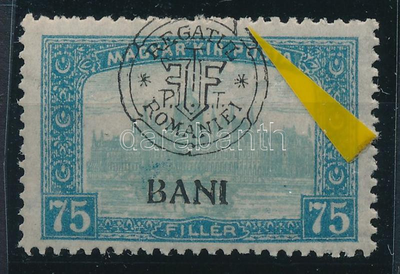 Kolozsvár 1919 Parlament 75f a felülnyomatban lemezhibával (kis festékfolt elöl-hátul) / with plate variety (small ink spots front and back)