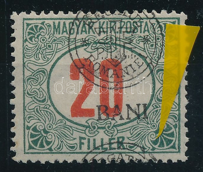 Beschreibung: Kolozsvár 1919 Portó 20f a felülnyomatban lemezhibával / with plate variety