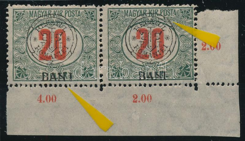Beschreibung: Kolozsvár 1919 Portó 20f pár lemezhibákkal / pair with plate varieties