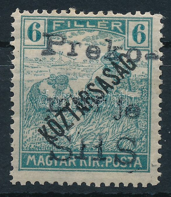 Beschreibung: Lendvavásárhely 1919 Arató/Köztársaság 6f magánkiadású bélyeg (ráncok) / private issue (creases)