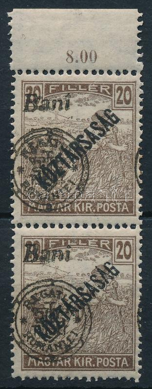 Beschreibung: Nagyvárad 1919 Arató/Köztársaság 20f pár elcsúszott felülnyomással / shifted overprint