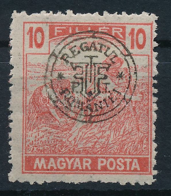 Beschreibung: Nagyvárad 1919 Magyar Posta 10f Bani nélkül / Mi 66 II. shifted overprint