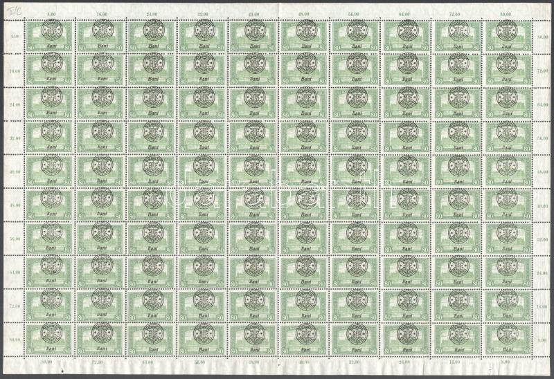 Nagyvárad 1919 Parlament 80f hajtott teljes ív elcsúszott felülnyomással és apróbb lemezhibákkal, Bodor vizsgálójellel / Mi 39 II. folded sheet with shifted perforation and smaller plate varieties. Sign: Bodor