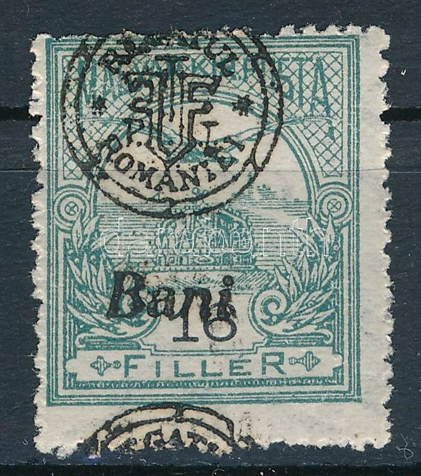 Beschreibung: Nagyvárad 1919 Turul 16f látványosan elcsúszott felülnyomással / Mi 16 II. with shifted overprint