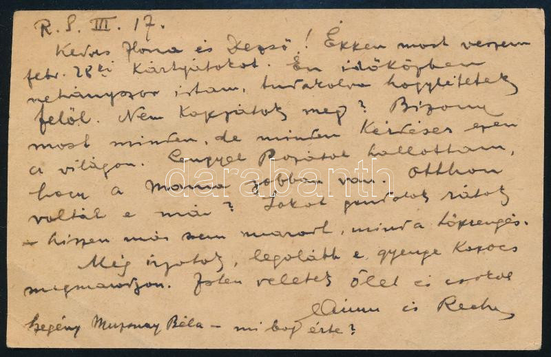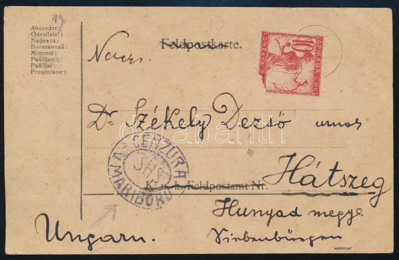 1918 Levelezőlap szerb cenzúrával https://www.darabanth.com/de/45-Gross-Auktion/45.1/Philatelie-und-Postgesichte-Ungarn-Online/Besetzung-und-Lokalausgabe-1919-1921-SHS~18861/1918-Levelezolap-szerb-cenzuraval~II3421218