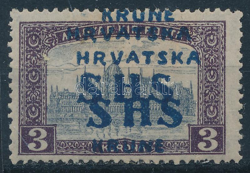 Beschreibung: SHS 1918 Parlament 3K kettős felülnyomással / Mi 81 with double overprint. Signed: Bodor