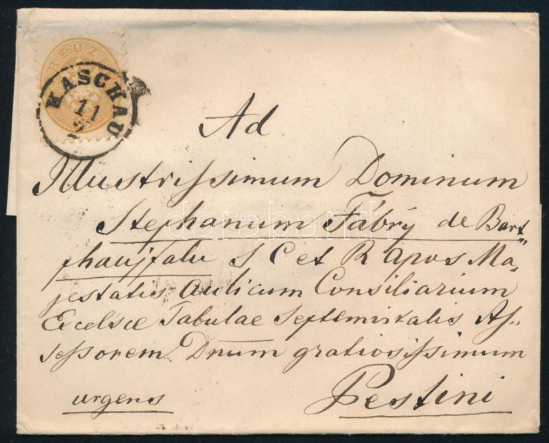 1865 15kr levélen / on cover "KASCHAU" - Pest https://www.darabanth.com/de/45-Gross-Auktion/45.1/Philatelie-und-Postgesichte-Ungarn-Online/Briefmarkenausgabe-1864~18732/1865-15kr-levelen-on-cover-KASCHAU-Pest~II3420503
