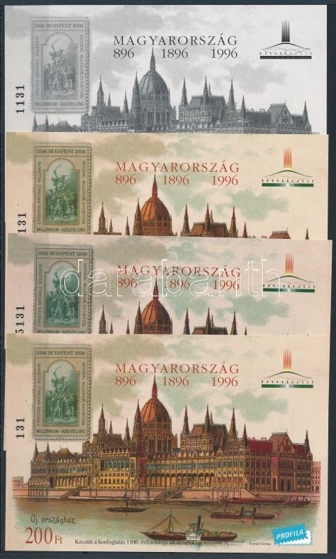 1996/11 Millecentenárium 4 darabos emlékív garnitúra azonos sorszámvég... https://www.darabanth.com/de/45-Gross-Auktion/45.1/Philatelie-und-Postgesichte-Ungarn-Online/Gedenkbogen~18894/199611-Millecentenarium-4-darabos-emlekiv-garnitura-azonos-sorszamvegzodessel-35000~II2411076