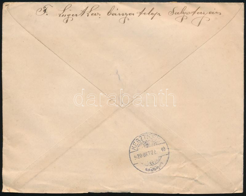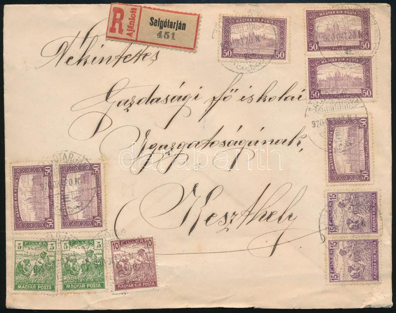Beschreibung: 1920 Ajánlott levél 11 db bélyeggel / Registered cover "SALGÓTARJÁN" - Keszthely