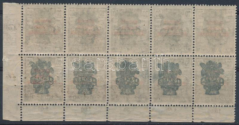 1920 Búzakalász 20f ívsarki tízestömb, az alsó sor a felülnyomat gépsz... https://www.darabanth.com/de/45-Gross-Auktion/45.1/Philatelie-und-Postgesichte-Ungarn-Online/Inflationsperiode-der-Korona~18879/1920-Buzakalasz-20f-ivsarki-tizestomb-az-also-sor-a-felulnyomat-gepszinatnyomataval-Mi~II3448755