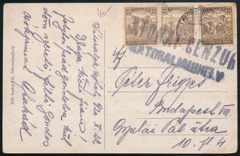 Beschreibung: 1920 Képeslap "CENZÚRA SÁTORALJAÚJHELY" / Censored postcard