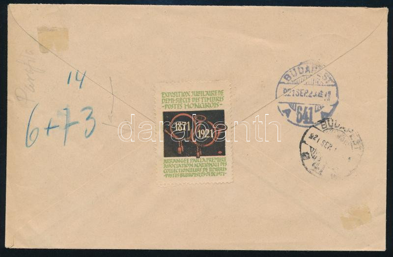 1921 Budapest ajánlott levél 4 db A magyar bélyeg félszázados emlék ün... https://www.darabanth.com/de/45-Gross-Auktion/45.1/Philatelie-und-Postgesichte-Ungarn-Online/Inflationsperiode-der-Korona~18879/1921-Budapest-ajanlott-level-4-db-A-magyar-belyeg-felszazados-emlek-unnepere-levelzaroval~II3420387