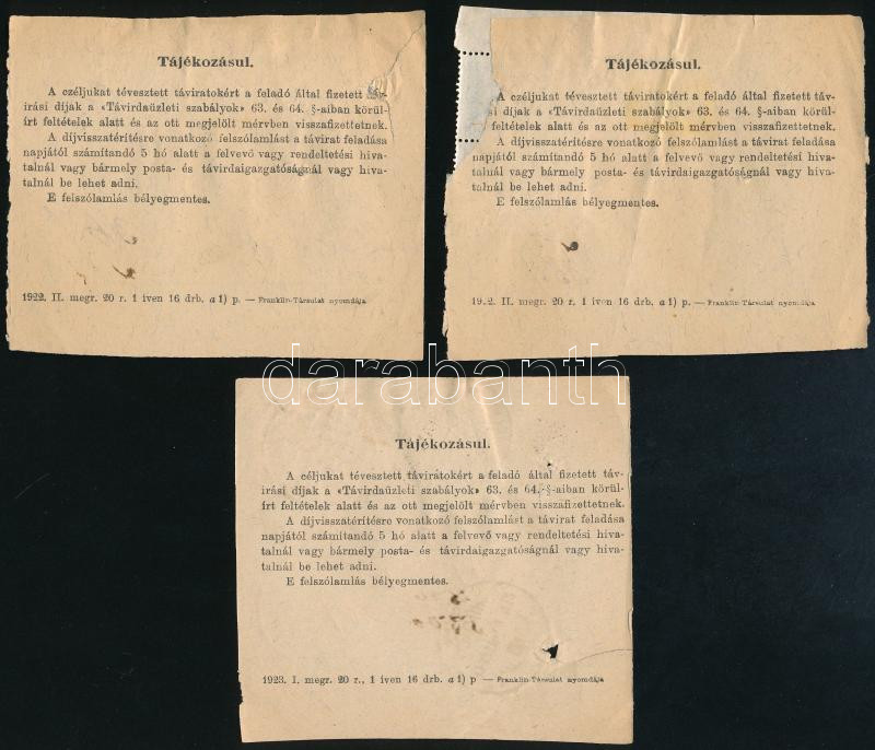 1923-1925 3 db díjnyugta / receipts https://www.darabanth.com/de/45-Gross-Auktion/45.1/Philatelie-und-Postgesichte-Ungarn-Online/Inflationsperiode-der-Korona~18879/1923-1925-3-db-dijnyugta-receipts~II3450372
