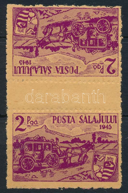 Beschreibung: Zilah II. 1945 2P ívközéprészes párban "felhő" tévnyomattal / pair with plate variety
