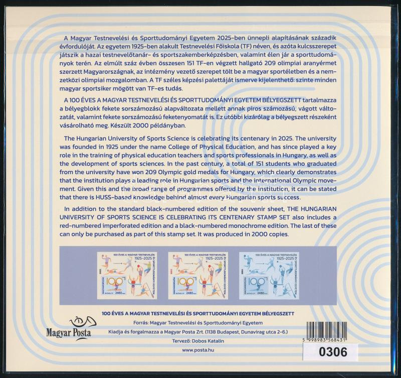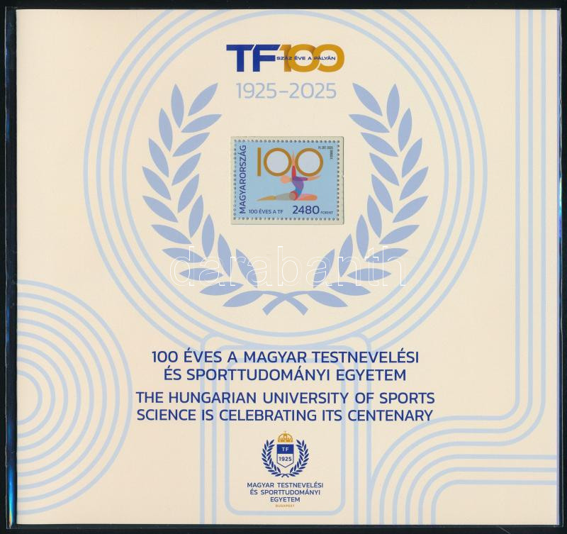 2025 Testnevelési Egyetem bélyegszett benne fogazott, vágott és feketenyomat blokk / Sports University block perforated, imperforate and blackprint in presentation pack