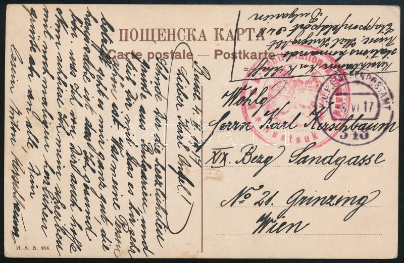 1915 Tábori posta képeslap Bécsbe küldve / Field postcard "K.u.K. ETAPPENPOST 348" , piros / red "K.u.K. Schiffstationstationkommando * R u t s c h u k" to Vienna