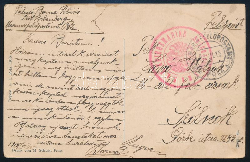 1915 Tábori posta képeslap / Field postcard "K.u.k. KRIEGSMARINE ... https://www.darabanth.com/de/45-Gross-Auktion/45.1/Philatelie-und-Postgesichte-Ungarn-Online/Osterreich-Ungarische-Feldpost-Erster-Weltkrieg-Marine~18750/1915-Tabori-posta-kepeslap-Field-postcard-Kuk-KRIEGSMARINE-SMS-BABENBERG~II2845215