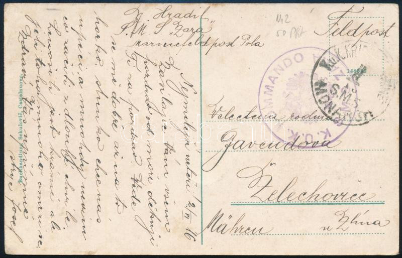 1916 Tábori posta képeslap / Field postcard "S.M.S. ZARA" https://www.darabanth.com/de/45-Gross-Auktion/45.1/Philatelie-und-Postgesichte-Ungarn-Online/Osterreich-Ungarische-Feldpost-Erster-Weltkrieg-Marine~18750/1916-Tabori-posta-kepeslap-Field-postcard-SMS-ZARA~II3024219