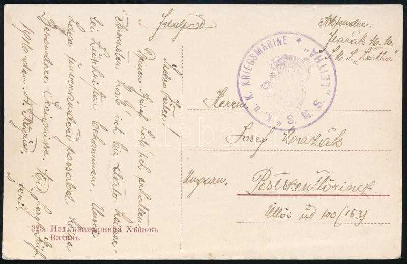 1916 Tábori posta képeslap Pestszentlőrinczre küldve / Field postcard ... https://www.darabanth.com/de/45-Gross-Auktion/45.1/Philatelie-und-Postgesichte-Ungarn-Online/Osterreich-Ungarische-Feldpost-Erster-Weltkrieg-Marine~18750/1916-Tabori-posta-kepeslap-Pestszentlorinczre-kuldve-Field-postcard-KuK-KRIEGSMARINE-SM~II3349820