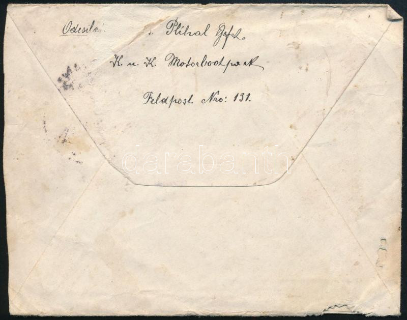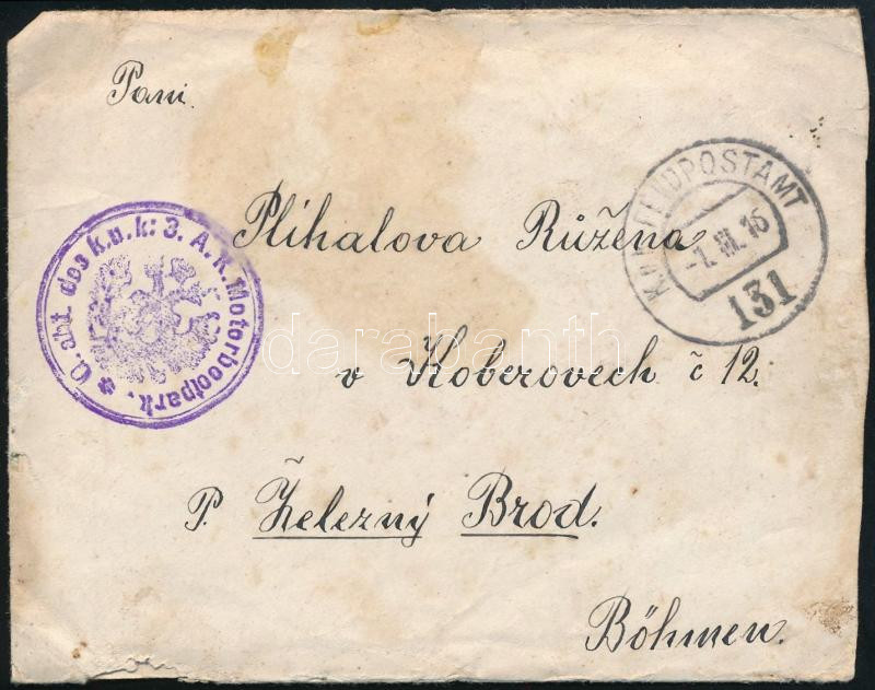 Beschreibung: 1916 Tábori posta levél tartalommal / Field cover "K.u.K. FELDPOSTAMT 131" , "O. abt. des k.u.k: 3 A.K. Motorbootpark."