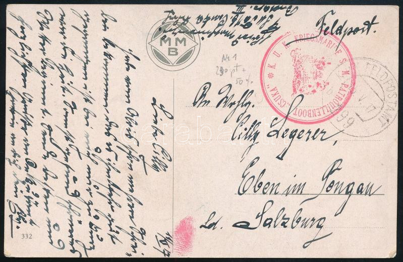 1917 Tábori posta képeslap / Field postcard "K. U. K. KRIEGSMARIN... https://www.darabanth.com/de/45-Gross-Auktion/45.1/Philatelie-und-Postgesichte-Ungarn-Online/Osterreich-Ungarische-Feldpost-Erster-Weltkrieg-Marine~18750/1917-Tabori-posta-kepeslap-Field-postcard-K-U-K-KRIEGSMARINE-S-M-PATROUILLENBOOT-CSUKA-~II3436705
