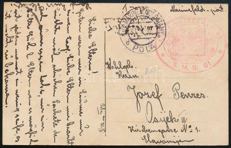 1917 Tábori posta képeslap / Field postcard "S.M.B. 81" https://www.darabanth.com/de/45-Gross-Auktion/45.1/Philatelie-und-Postgesichte-Ungarn-Online/Osterreich-Ungarische-Feldpost-Erster-Weltkrieg-Marine~18750/1917-Tabori-posta-kepeslap-Field-postcard-SMB-81~II3439532
