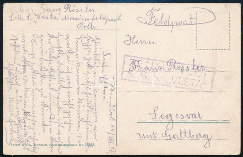 1917 Tábori posta képeslap / Field postcard "S.M.S. VESTA" https://www.darabanth.com/de/45-Gross-Auktion/45.1/Philatelie-und-Postgesichte-Ungarn-Online/Osterreich-Ungarische-Feldpost-Erster-Weltkrieg-Marine~18750/1917-Tabori-posta-kepeslap-Field-postcard-SMS-VESTA~II2989981