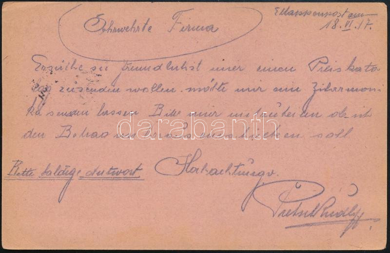 1917 Tábori posta levelezőlap / Field postcard "HADTÁP-POSTAHIVAT... https://www.darabanth.com/de/45-Gross-Auktion/45.1/Philatelie-und-Postgesichte-Ungarn-Online/Osterreich-Ungarische-Feldpost-Erster-Weltkrieg-Marine~18750/1917-Tabori-posta-levelezolap-Field-postcard-HADTAP-POSTAHIVATAL-115-K-u-k-Unterwasse~II3430037