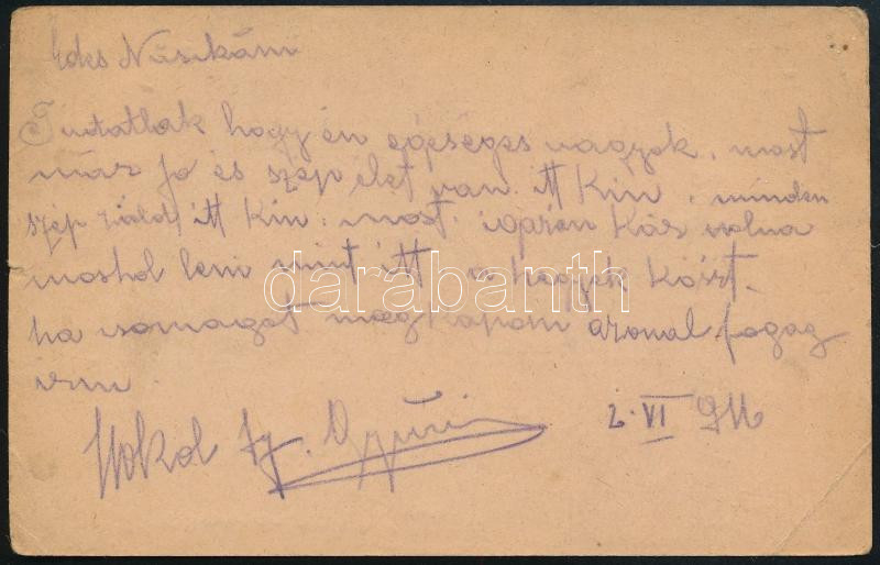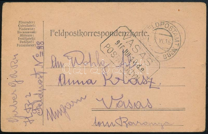 Beschreibung: 1916 Tábori posta levelezőlap "VASAS" postaügynökségi bélyegzéssel / Field postcard with postal agency postmark