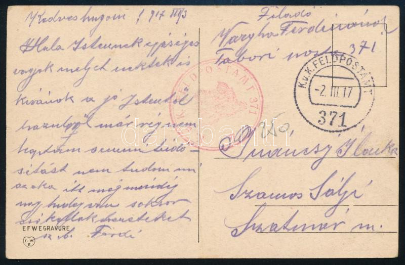 Beschreibung: 1917 Tábori posta képeslap / Field postcard "K.u.K. FELDPOSTAMT 371"